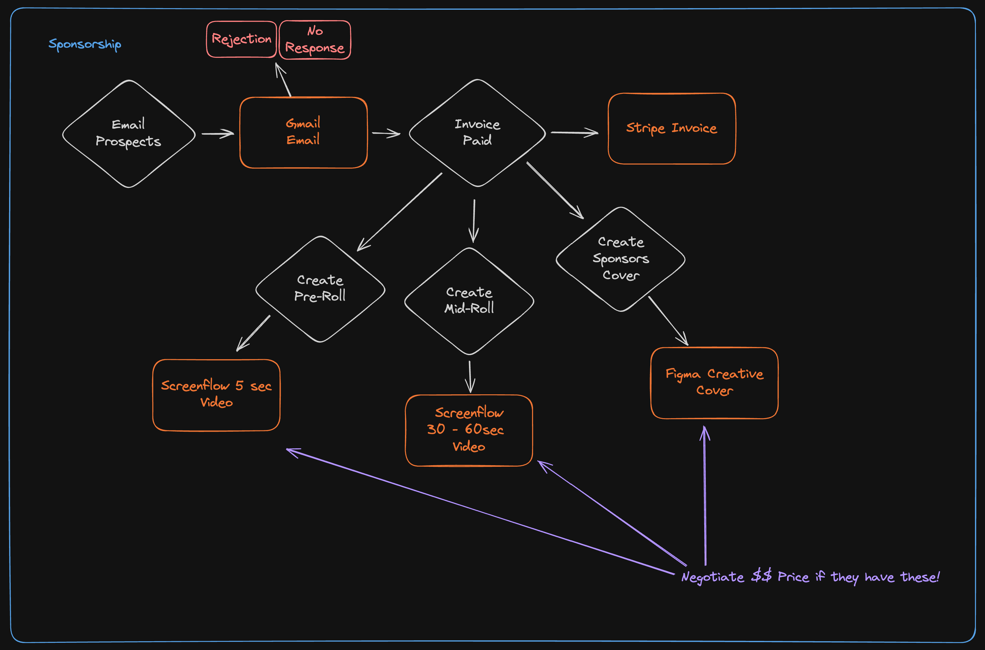 Behind the scenes, I have to somehow pay for all of this time and effort (and maybe even Brittney), so much of my time is reaching out to potential sponsors, negotiating deals, and handling the financial aspects like invoices and payments through services like Stripe. This requires a delicate balance of marketing, communication, and negotiation skills — far removed from the microphone and recording software. This part is hard for me as a developer, it takes a lot of practice as a person that has been an intravert his whole life.